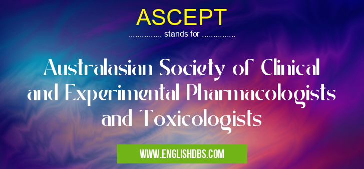 ASCEPT mostly used in an acronym Societies in Category Academic & Science that means Australasian Society of Clinical and Experimental Pharmacologists and Toxicologists