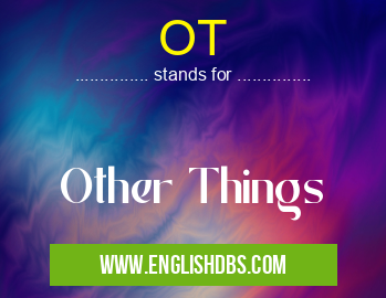 • "OT" (n.d.). endb.tulihost.com. Retrieved 24 Apr, 2026, from https://endb.tulihost.com/abbreviation/607307.