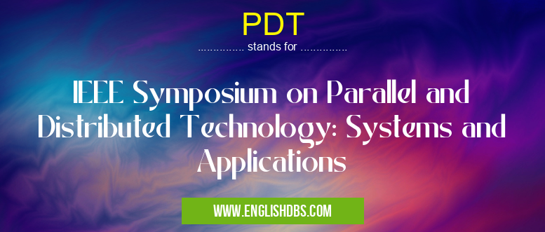 PDT mostly used in an acronym IEEE in Category Academic & Science that means IEEE Symposium on Parallel and Distributed Technology: Systems and Applications