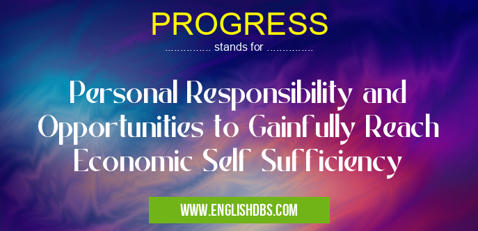 PROGRESS mostly used in an acronym Community in Category Community that means Personal Responsibility and Opportunities to Gainfully Reach Economic Self Sufficiency
