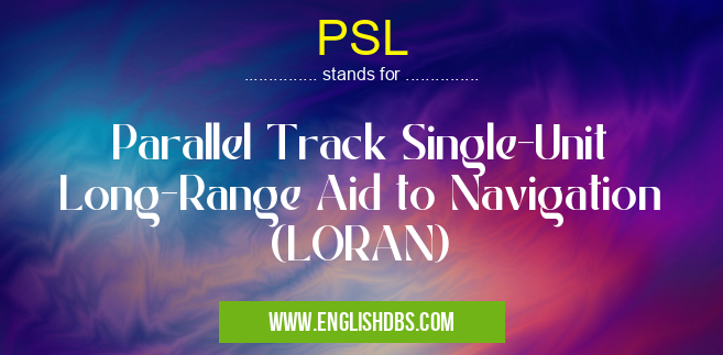 PSL mostly used in an acronym Military in Category Governmental that means Parallel Track Single-Unit Long-Range Aid to Navigation (LORAN)