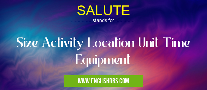 SALUTE mostly used in an acronym Unclassified in Category Miscellaneous that means Size Activity Location Unit Time Equipment