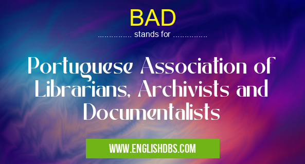 BAD mostly used in an acronym Societies in Category Academic & Science that means Portuguese Association of Librarians, Archivists and Documentalists