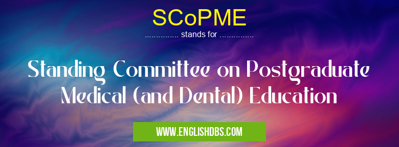 SCoPME mostly used in an acronym British Medicine in Category Medical that means Standing Committee on Postgraduate Medical (and Dental) Education