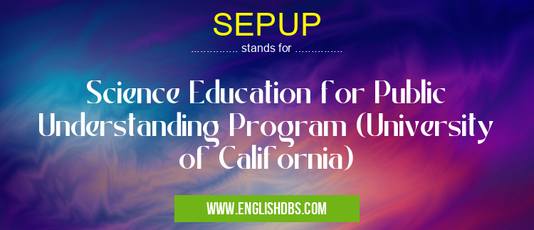 SEPUP mostly used in an acronym Universities in Category Academic & Science that means Science Education for Public Understanding Program (University of California)