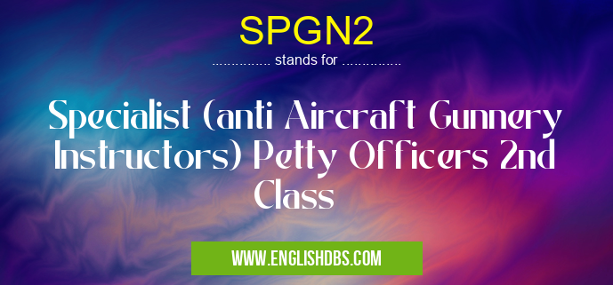 SPGN2 mostly used in an acronym Navy in Category Governmental that means Specialist (anti Aircraft Gunnery Instructors) Petty Officers 2nd Class