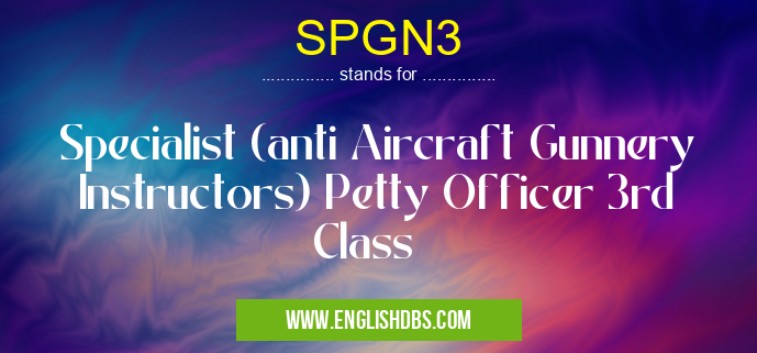 SPGN3 mostly used in an acronym Navy in Category Governmental that means Specialist (anti Aircraft Gunnery Instructors) Petty Officer 3rd Class