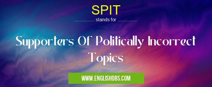 SPIT mostly used in an acronym Unclassified in Category Miscellaneous that means Supporters Of Politically Incorrect Topics