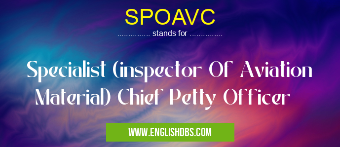 SPOAVC mostly used in an acronym Navy in Category Governmental that means Specialist (inspector Of Aviation Material) Chief Petty Officer