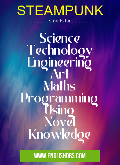 STEAMPUNK mostly used in an acronym Academic & Science in Category Academic & Science that means Science Technology Engineering Art Maths Programming Using Novel Knowledge