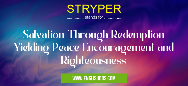 STRYPER mostly used in an acronym Unclassified in Category Miscellaneous that means Salvation Through Redemption Yielding Peace Encouragement and Righteousness