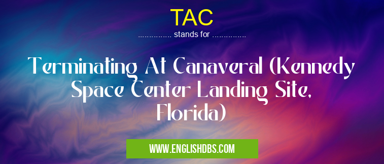 TAC mostly used in an acronym NASA in Category Governmental that means Terminating At Canaveral (Kennedy Space Center Landing Site, Florida)