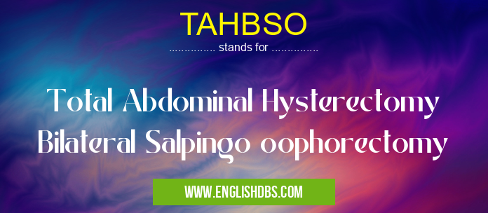 TAHBSO mostly used in an acronym Unclassified in Category Miscellaneous that means Total Abdominal Hysterectomy Bilateral Salpingo oophorectomy