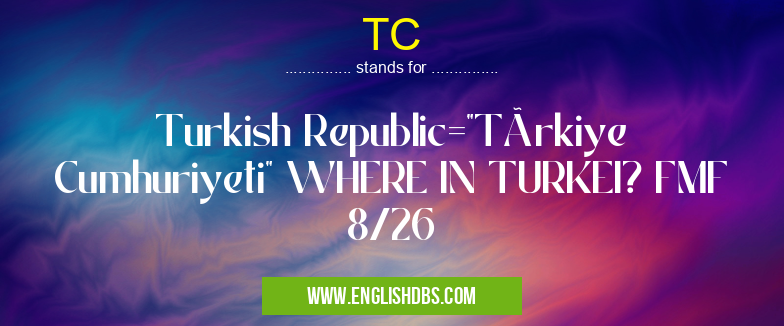 TC mostly used in an acronym Turkish in Category International that means Turkish Republic="Türkiye Cumhuriyeti" WHERE IN TURKEI? FMF 8/26