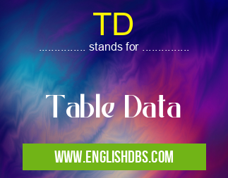 TD mostly used in an acronym Assembly in Category Computing that means Table Data