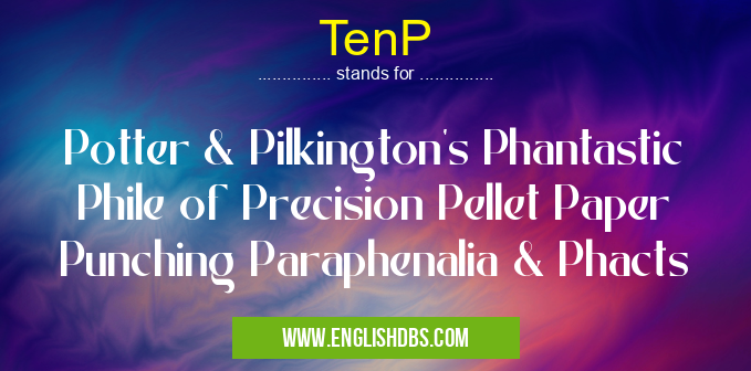 TenP mostly used in an acronym Internet in Category Internet that means Potter & Pilkington's Phantastic Phile of Precision Pellet Paper Punching Paraphenalia & Phacts