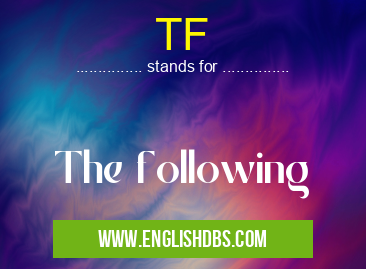 TF mostly used in an acronym Unclassified in Category Miscellaneous that means The following
