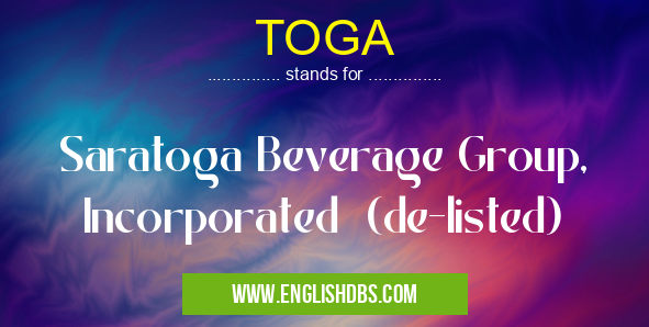 TOGA mostly used in an acronym NASDAQ Symbols in Category Business that means Saratoga Beverage Group, Incorporated (de-listed)