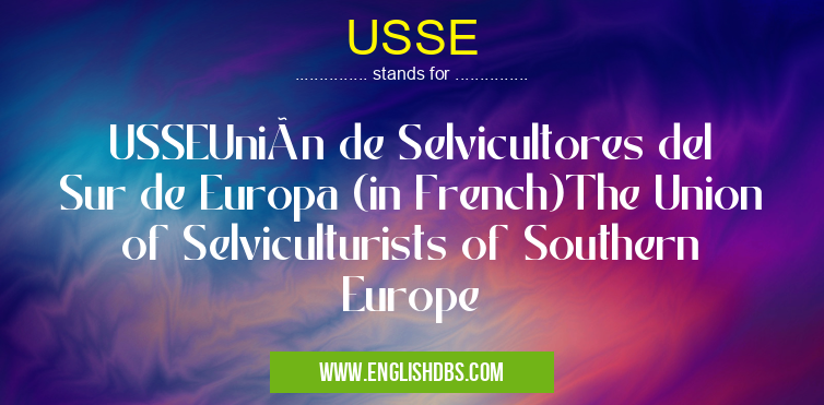 USSE mostly used in an acronym Governmental in Category Governmental that means USSEUnión de Selvicultores del Sur de Europa (in French)The Union of Selviculturists of Southern Europe