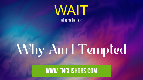 What does it stands for / WAIT definition / WAIT means?The definition of WAIT is given above. Check out related information for more details. What does abbreviation mean WAIT?The abbreviation for WAIT is given above, so check out related information. What is the meaning of WAIT?The meaning of the WAIT is also explained earlier. So far, you might have gotten some idea about the acronym, abbreviation, or meaning of WAIT. What does WAIT mean? is explained earlier. You might also like some similar terms related to WAIT to know more about it. This site contains various terms related to Research, Geography, IEEE, British Degree, Meteorology, Optics, Colleges, Societies, Hydrology, Academic Degrees, Trade Associations, Finance, Auditing, Agencies, Career, Institutes, Environmental, Governmental, Fire Departments, Commerce, Geriatric, Nursing, Veterinary, Disability, Cancer, Surgical, Transplantation, Prevention, Hospitals, Prescription and other terms. What is WAIT?The acronym ACF could stand for more than one thing. To find out what it means, look up all of its possible meanings one by one. - What does WAIT stands for in category MISCELLANEOUS