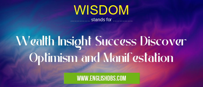 WISDOM mostly used in an acronym Unclassified in Category Miscellaneous that means Wealth Insight Success Discover Optimism and Manifestation