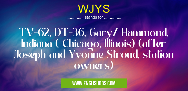 WJYS mostly used in an acronym TV Stations in Category Community that means TV-62, DT-36, Gary/ Hammond, Indiana ( Chicago, Illinois) (after Joseph and Yvonne Stroud, station owners)