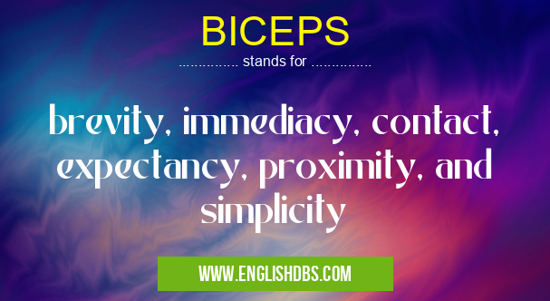 BICEPS mostly used in an acronym Military in Category Governmental that means brevity, immediacy, contact, expectancy, proximity, and simplicity