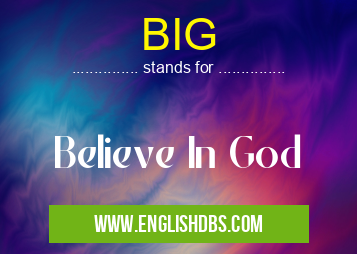 BIG mostly used in an acronym Unclassified in Category Miscellaneous that means Believe In God