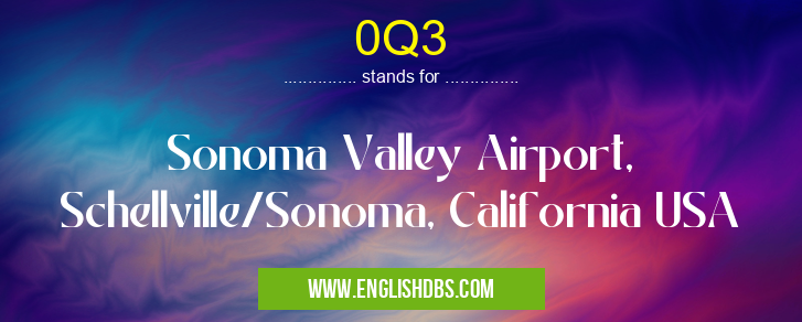 0Q3 mostly used in an acronym Airport Codes in Category Regional that means Sonoma Valley Airport, Schellville/Sonoma, California USA