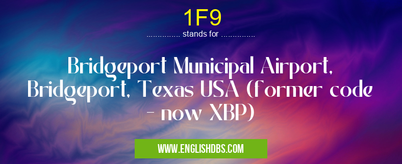 1F9 mostly used in an acronym Airport Codes in Category Regional that means Bridgeport Municipal Airport, Bridgeport, Texas USA (former code - now XBP)