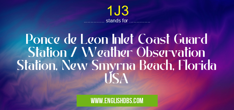 1J3 mostly used in an acronym Airport Codes in Category Regional that means Ponce de Leon Inlet Coast Guard Station / Weather Observation Station, New Smyrna Beach, Florida USA
