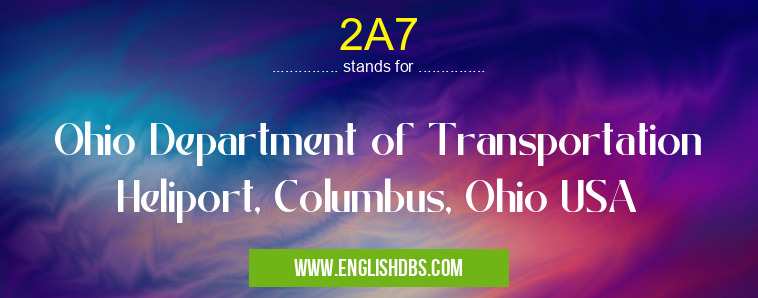 2A7 mostly used in an acronym Airport Codes in Category Regional that means Ohio Department of Transportation Heliport, Columbus, Ohio USA