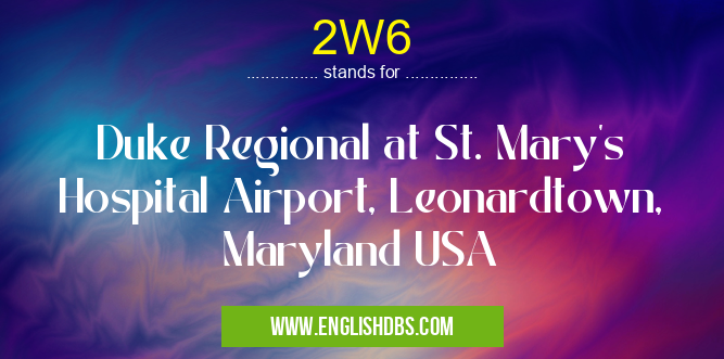 2W6 mostly used in an acronym Airport Codes in Category Regional that means Duke Regional at St. Mary's Hospital Airport, Leonardtown, Maryland USA