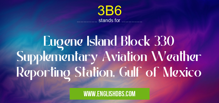 3B6 mostly used in an acronym Airport Codes in Category Regional that means Eugene Island Block 330 Supplementary Aviation Weather Reporting Station, Gulf of Mexico