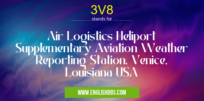 3V8 mostly used in an acronym Airport Codes in Category Regional that means Air Logistics Heliport Supplementary Aviation Weather Reporting Station, Venice, Louisiana USA