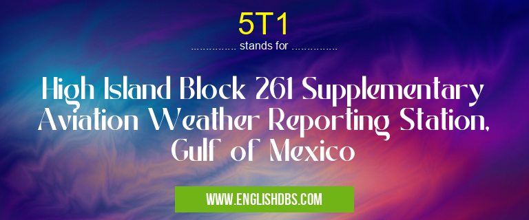 5T1 mostly used in an acronym Airport Codes in Category Regional that means High Island Block 261 Supplementary Aviation Weather Reporting Station, Gulf of Mexico