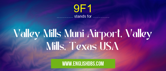 9F1 mostly used in an acronym Airport Codes in Category Regional that means Valley Mills Muni Airport, Valley Mills, Texas USA