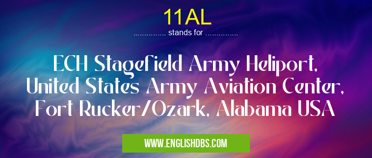 11AL mostly used in an acronym Airport Codes in Category Regional that means ECH Stagefield Army Heliport, United States Army Aviation Center, Fort Rucker/Ozark, Alabama USA