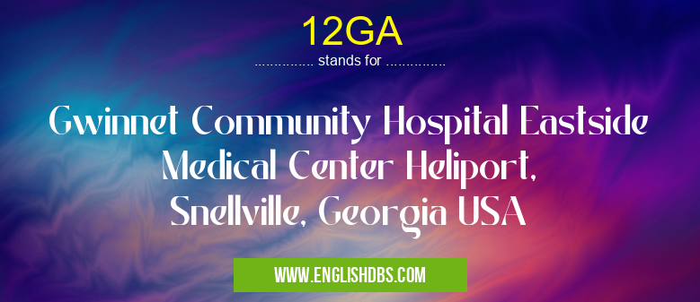 12GA mostly used in an acronym Airport Codes in Category Regional that means Gwinnet Community Hospital Eastside Medical Center Heliport, Snellville, Georgia USA