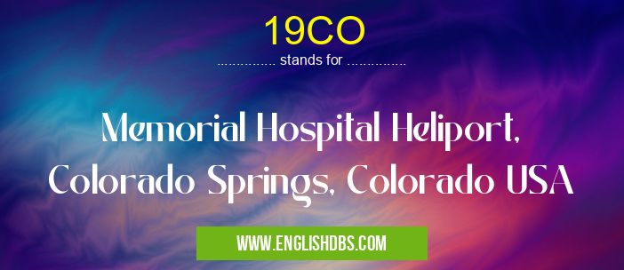 19CO mostly used in an acronym Airport Codes in Category Regional that means Memorial Hospital Heliport, Colorado Springs, Colorado USA