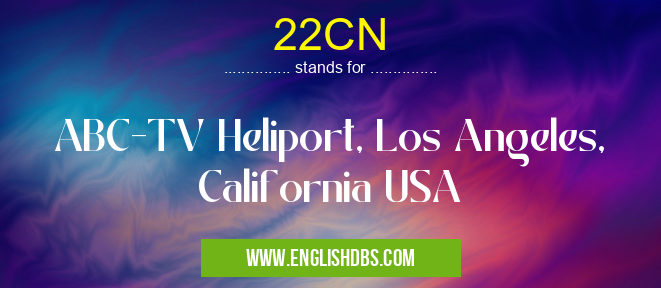22CN mostly used in an acronym Airport Codes in Category Regional that means ABC-TV Heliport, Los Angeles, California USA