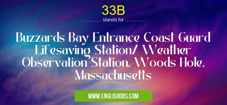 33B mostly used in an acronym Airport Codes in Category Regional that means Buzzards Bay Entrance Coast Guard Lifesaving Station/ Weather Observation Station, Woods Hole, Massachusetts
