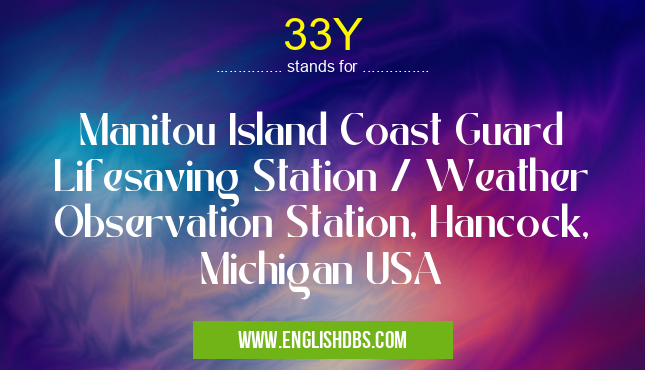 33Y mostly used in an acronym Airport Codes in Category Regional that means Manitou Island Coast Guard Lifesaving Station / Weather Observation Station, Hancock, Michigan USA