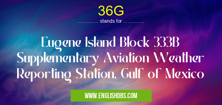 36G mostly used in an acronym Airport Codes in Category Regional that means Eugene Island Block 333B Supplementary Aviation Weather Reporting Station, Gulf of Mexico