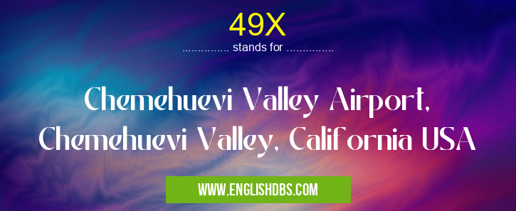 49X mostly used in an acronym Airport Codes in Category Regional that means Chemehuevi Valley Airport, Chemehuevi Valley, California USA