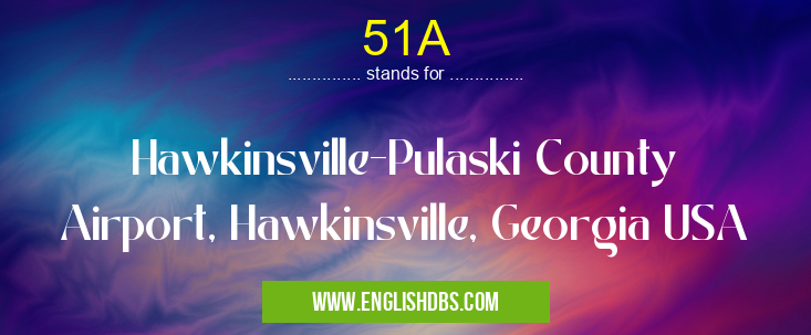 51A mostly used in an acronym Airport Codes in Category Regional that means Hawkinsville-Pulaski County Airport, Hawkinsville, Georgia USA