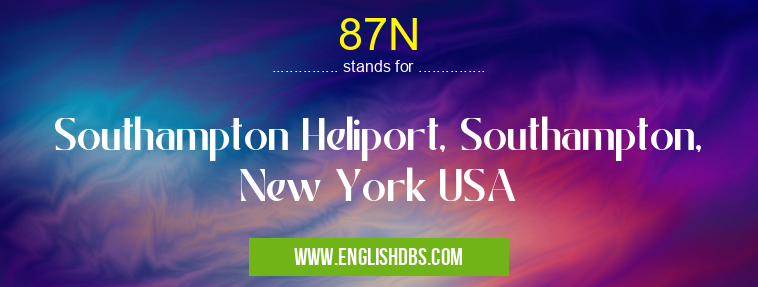 87N mostly used in an acronym Airport Codes in Category Regional that means Southampton Heliport, Southampton, New York USA