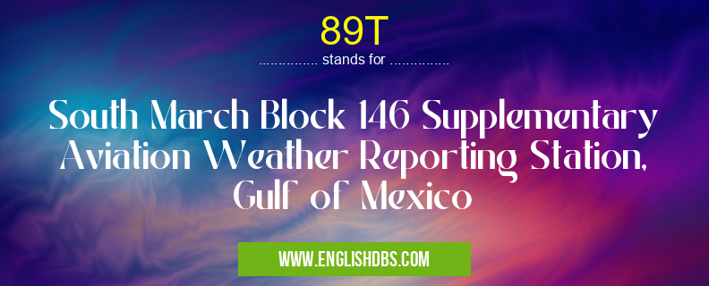 89T mostly used in an acronym Airport Codes in Category Regional that means South March Block 146 Supplementary Aviation Weather Reporting Station, Gulf of Mexico