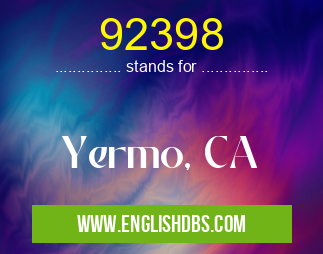 92398 mostly used in an acronym ZIP Codes in Category Regional that means Yermo, CA