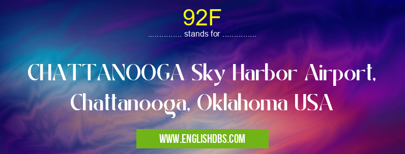 92F mostly used in an acronym Airport Codes in Category Regional that means CHATTANOOGA Sky Harbor Airport, Chattanooga, Oklahoma USA